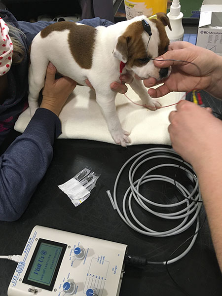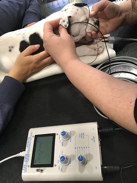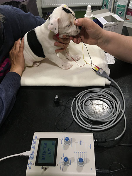 Pomocí tohoto přístroje dochází k měření elektRické aktivity sluchového aparátu na základě vysílaných zvukových impulsů zobrazujících se podobně jako křivka EKG. Vyšetření je vhodné provádět u štěňat od stáří 7 týdnů.