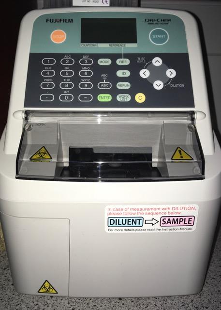 imunologický analyzátor FUJI AU10, který s přesností stanovuje hodnoty progesteronu. Mezi jeho další přednosti patří stanovení TSH (další hormon k diagnostice onemocnění štítné žlázy) a kortizolu (diagnostika Cushinga).